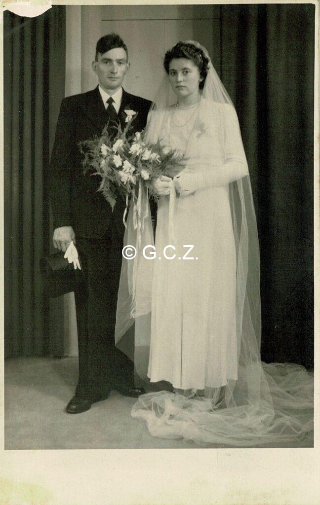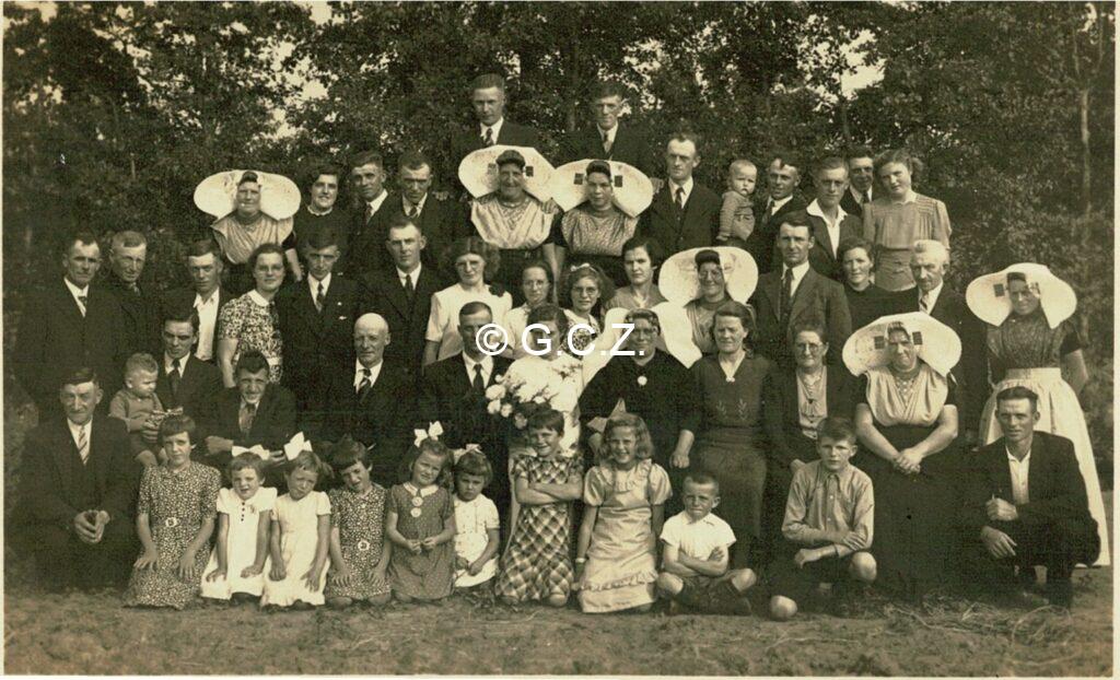 Bruidspaar Tobias Westdorp (1913-2001) en Maria Gerritje van Sabben (1917-2008) en de gasten.