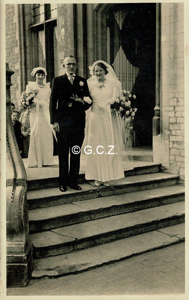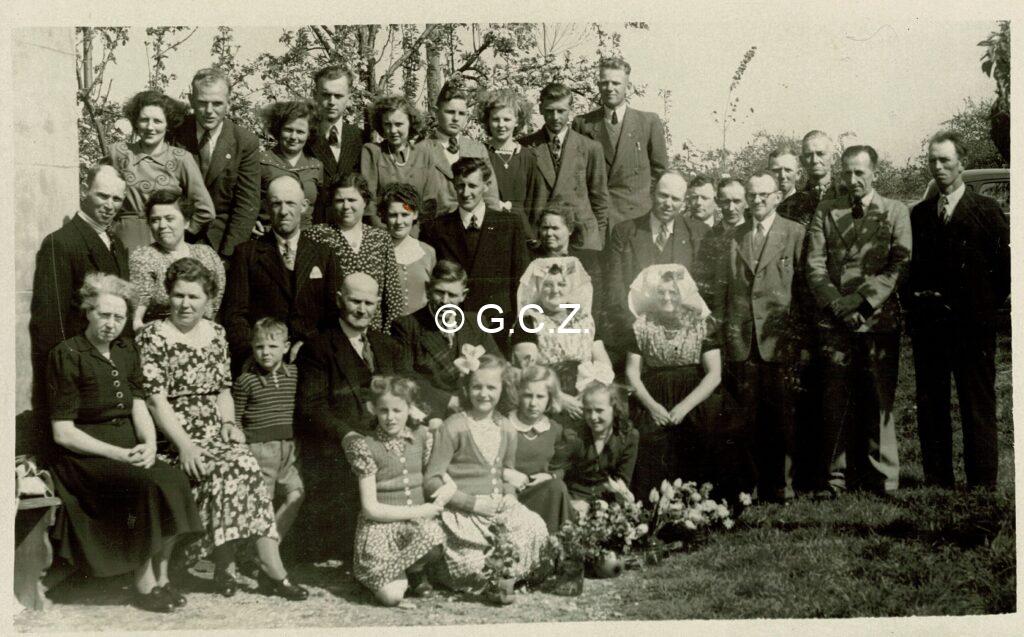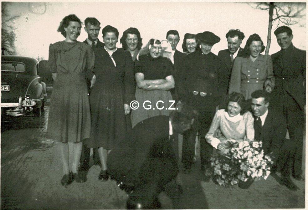 Bruidspaar Tobias Westdorp (1913-2001) en Maria Gerritje van Sabben (1917-2008) en de gasten.